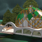 Különös hely a derecskei almáskert, a Debrecen felé vezető úton, ahol úgy termelik az almát, mint egy pontosan szervezett üzemben. Ügyelnek a természetre, gondoskodnak a madarakról és a sünökről, és közben gyönyörű gyümölcsöket termelnek hatalmas mennyiségben. Módszereiket nem titkolják, sőt, igyekeznek megmutatni, főleg a családoknak, a gyerekeknek. Ennek érdekében próbáltak nekilendülni egy látogatóközpont építésének, amely egy tervpályázatig jutott. Itt látható az én próbálkozásom, amelyet az alma kereksége ihletett.