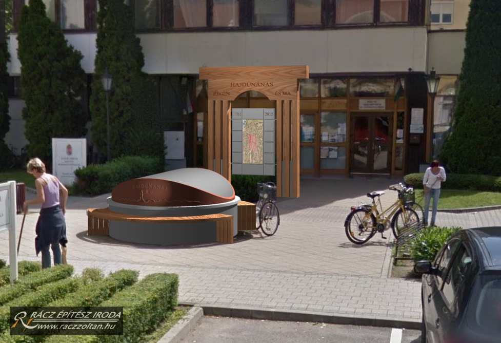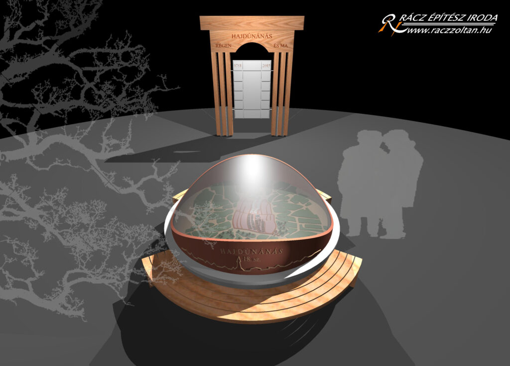 Tervezni kellett a hajdúnánási város makett befogadására szolgáló műtárgyat a múzeum és a könyvtár közötti kerek virágágyás felhasználásával, valamint mellette egy városkaput jelképező hirdetőtáblát. A 2,3 m átmérőjű, II. József korabeli katonai felmérés alapján készített makett köré, két oldalról egy hajlított keret kerül. A makettet egy irányban hajlított ragasztott biztonsági üveg fedi le.