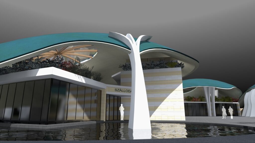 A fürdő jelentős fejlesztését és bővítését külső és belső terekkel, gyógyászati részleggel terveztük, egészen kiviteli tervig, de sajnos nem jutott rá pénz. Pedig a napraforgó szerkezető kupola igazi érdekesség lehetett volna, Dezső Zsigmond statikus kollégám jóvoltából.